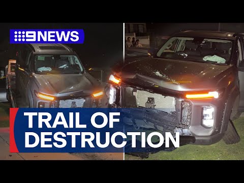 Three youths in an allegedly stolen car have left a trail of destruction at Forestville, wiping out several parked cars...